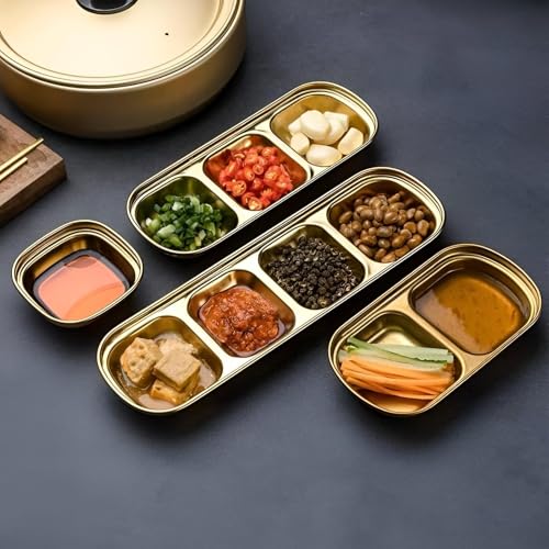 - This versatile set includes a divided bowl, a soy sauce plate, and three appetizer serving dishes, ideal for a range of applications. The dedicated compartments prevent flavor mixing, allowing you to serve sauces like ketchup, mustard, mayonnaise, and even ice cubes and lemon slices, ensuring that every guest enjoys their meal without unintended flavor combinations.