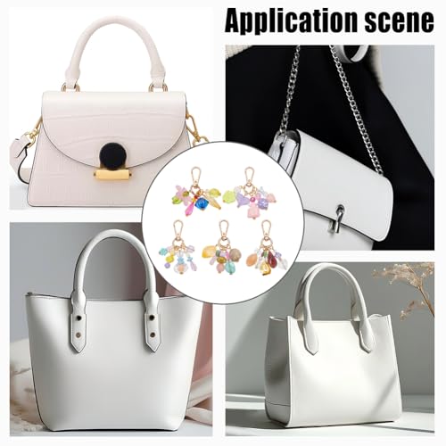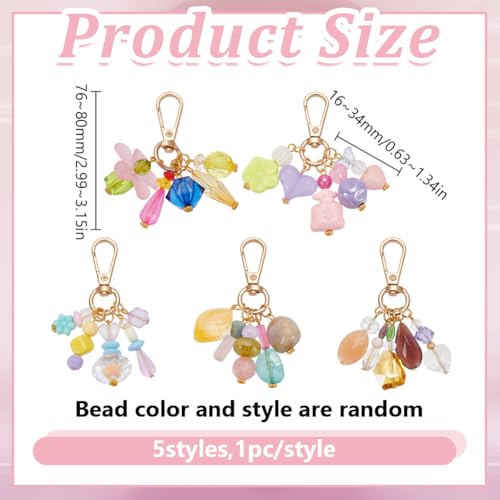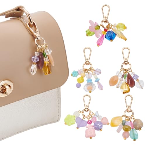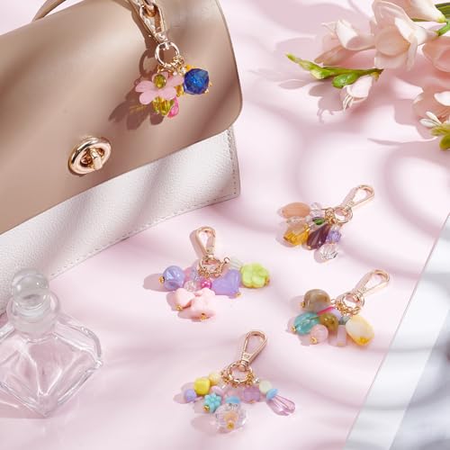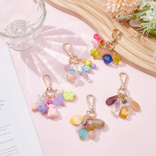DELORIGIN - Pack of 5 Cute Pearl Key Rings with Flowers Charm Acrylic Glass Bag Pendant Decoration for Women Handbag Purse Accessories Jewellery Gift