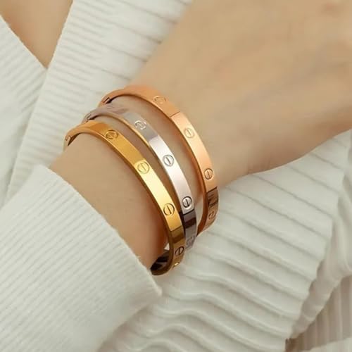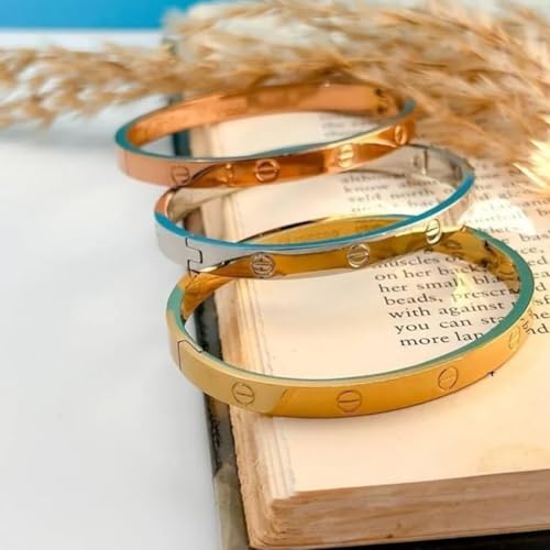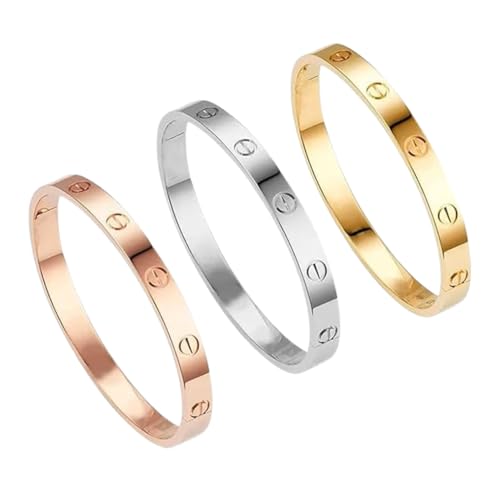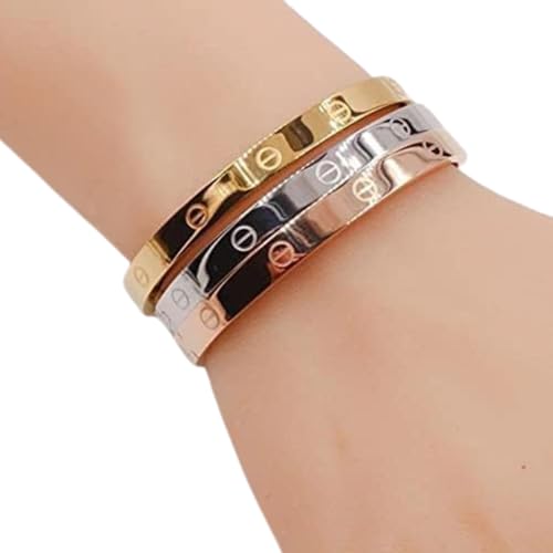 Generic - Dema Fashion 18K Gold Plated 316L Stainless Steel Bangle Bracelets for Women, Heart Design with Crystal Accents, Hinged Cuff, Rose Gold Silver Gold, 3 Pack