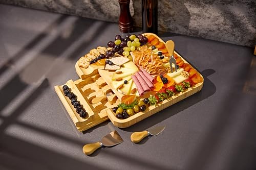 - Perfect Gift Choice: Surprise loved ones with this luxurious bamboo cheese board set, a gift that’s both practical and stylish. Thoughtfully packaged and ideal for couples, friends, or family, it’s a charcuterie board they’ll cherish for countless upcoming gatherings from housewarmings to weddings.