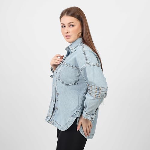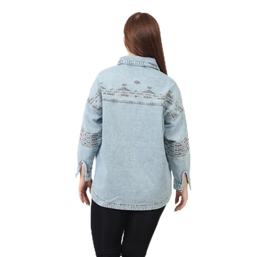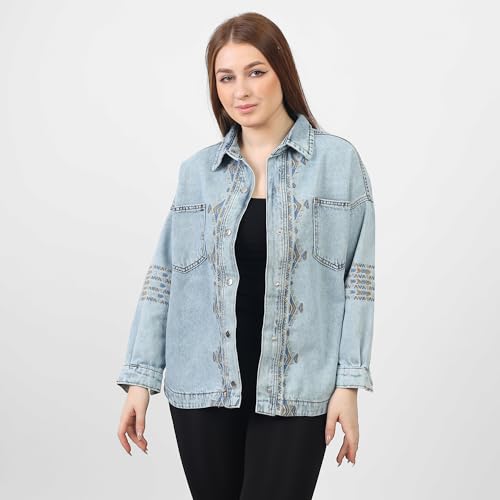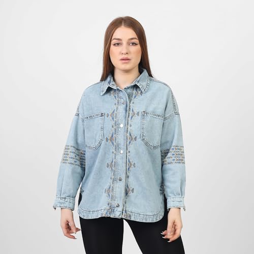 Coctail - جاكيت جينز بنمط هندسي مطرز، ازرق-3599