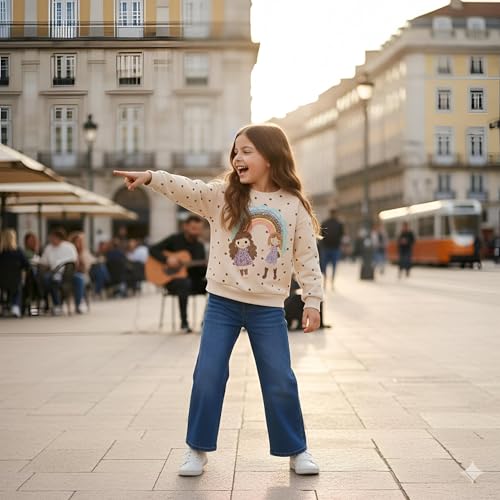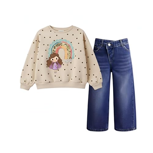 Generic - Denim Sweet Set - 2-Piece set with a pink floral embroidered half‑zip sweatshirt and crisp blue denim jeans, made from soft cotton‑blend for comfort, perfect for play and birthday fun.