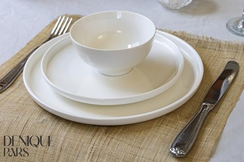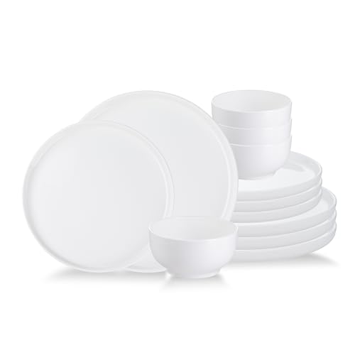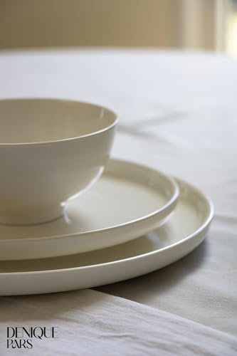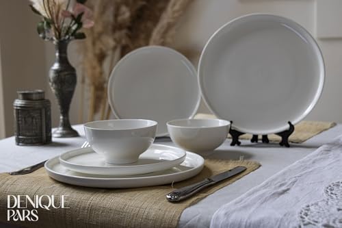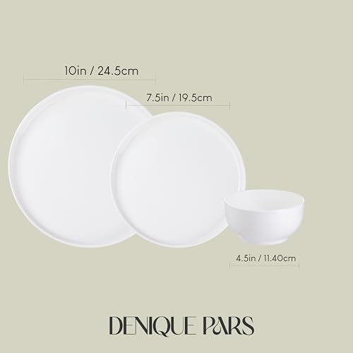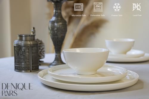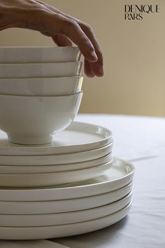 Denique Pars - طقم أطباق عشاء بورسلين سادة بيضاء مكون 12 قطعة يتضمن 4 أطباق عميقة و4 أطباق صغيرة و4 أطباق كبيرة بلمسة لامعة عصري وتصميم قابل للتكديس من دينيك بارس