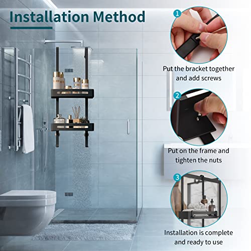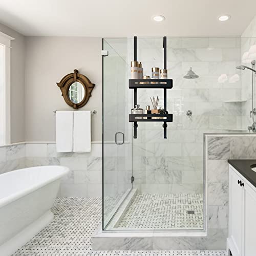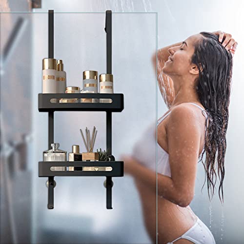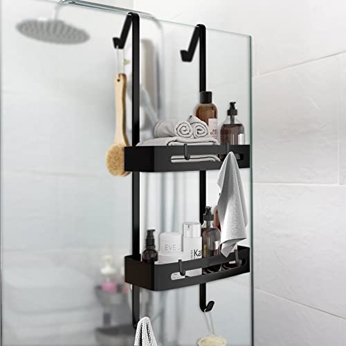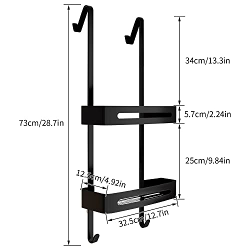 dentedeleao - Shower Shelf for Hanging 2 Levels Shower Basket with Hooks Shower Gel Holder Bearing 30 kg No Drilling Over the Door for Bathroom Bathroom Shower, Black
