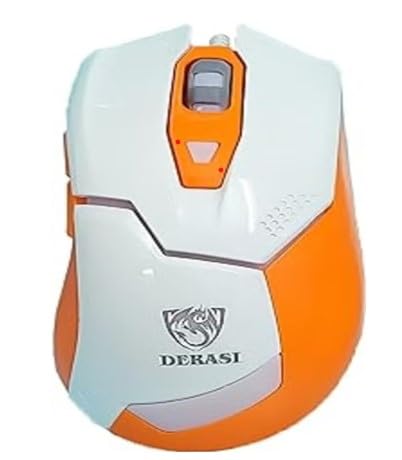 - ماوس سلكي Derasi T50 للألعاب مزود بـ 7 أزرار وإضاءة خلفية ودقة 2400 نقطة في البوصة ومزود بـ RGB (1.8 متر، أبيض وبرتقالي)