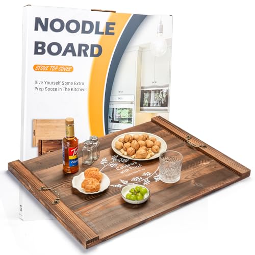 Derbaeeo - Stove Top Cover for Gas Stove with Handles, 30 * 22 Inches Wood Noodle Board Stove Guard for Electric Stove Top, Stove Top Protector for More Counter Space (Fir Wood)