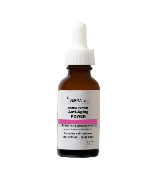 DERMA TEN - Anti-Aging Power Serum, 1% Retinol with 3 Vitamins and HA, 30ml