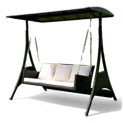 Generic - Designchy Handwoven Patio Swing with Canopy, 200 cm, Brown Rattan, Off-White Cushions