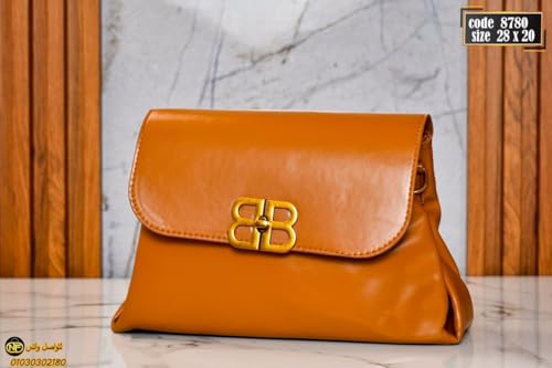 Generic - Designer Clutch Handbag with Gold BB Logo, Leather, Available in Black, White, Beige