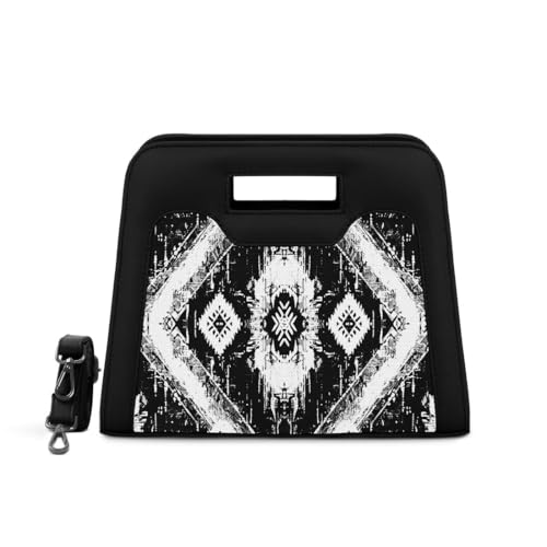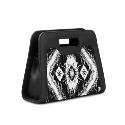 Generic - Designer Handbag with Ethnic Ikat Pattern, Black and White, Geometric Print