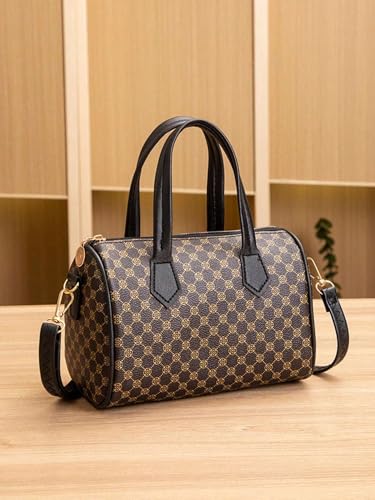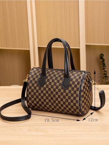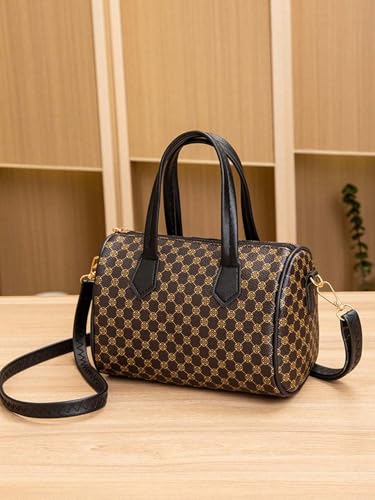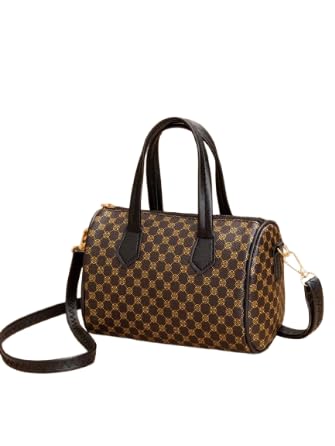 Generic - شنطة يد اسطوانية بتصميم مونوغرام من ديزاينر، نمط بني وذهبي، مقابض جلدية، حزام كروس