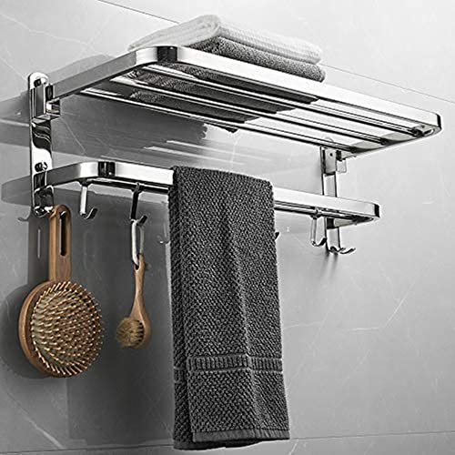 DesignFit - Designfit Stainless Steel 304 Grade Dual Foldable Towel and Napkin Racks for Bathroom Towel Stand Hanger Bathroom Accessories (24 Inch-Chrome)