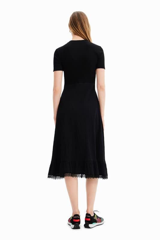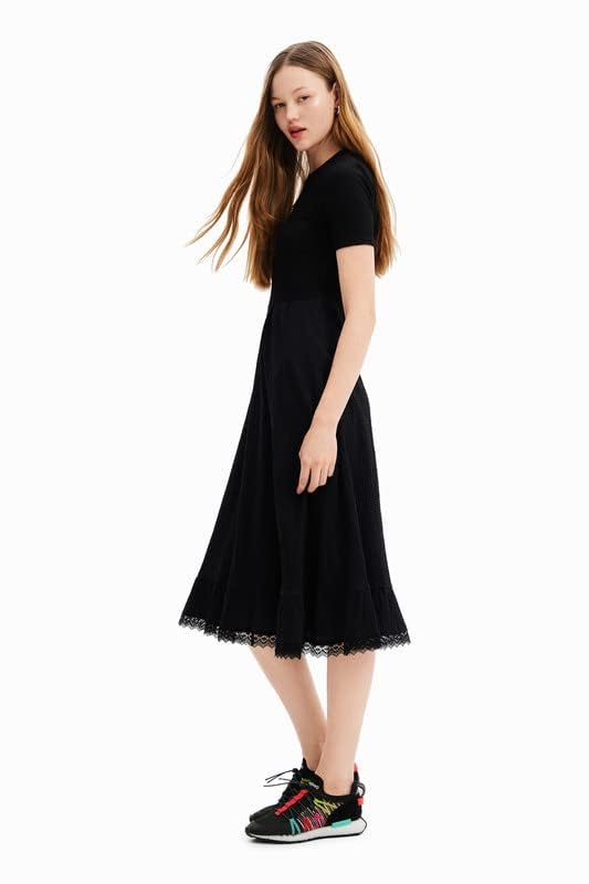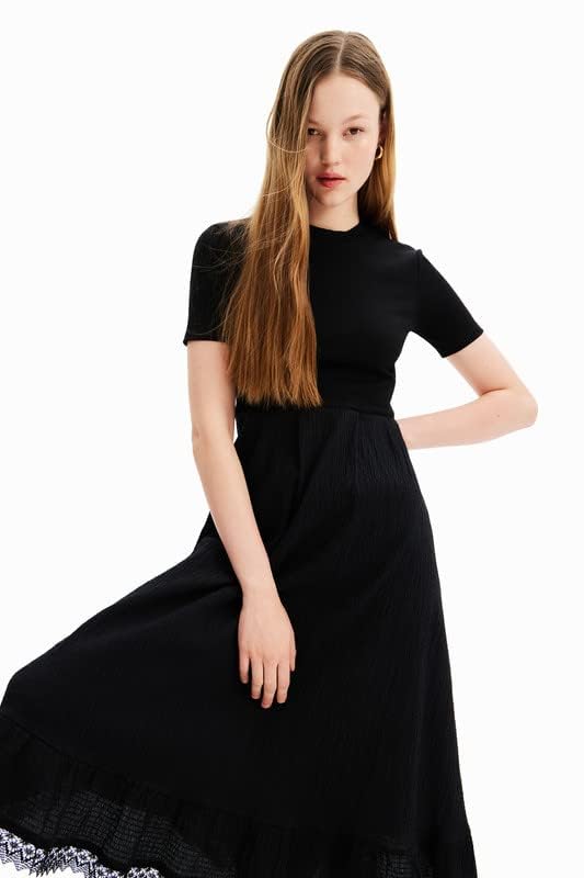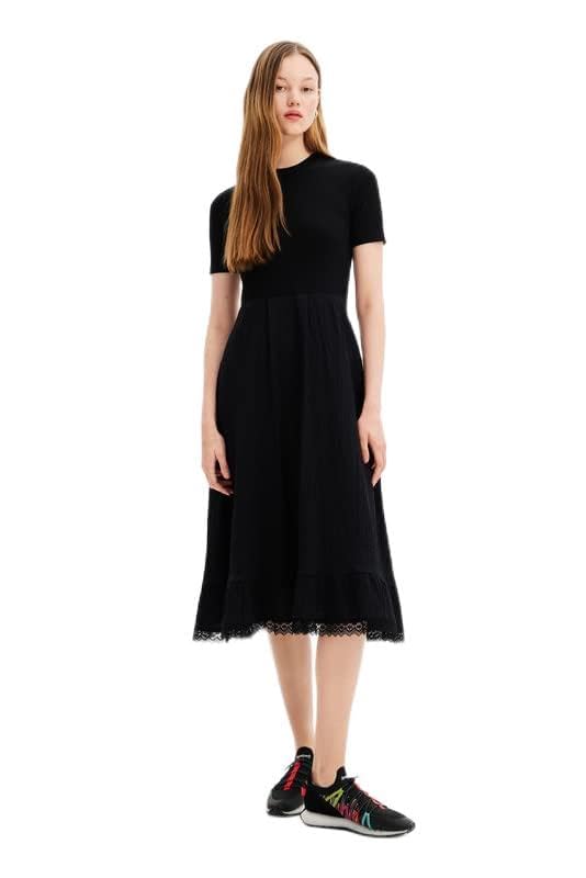 Desigual - ديسيجوال فستان متوسط الطول منسوج مختلط, أسود، S، للنساء