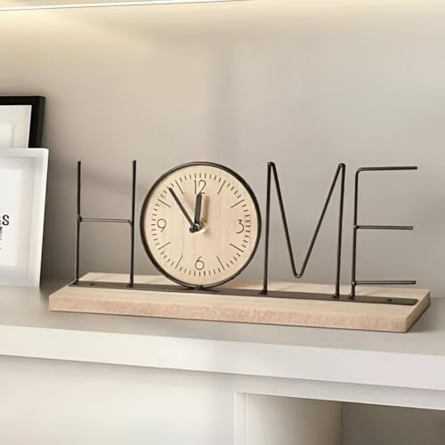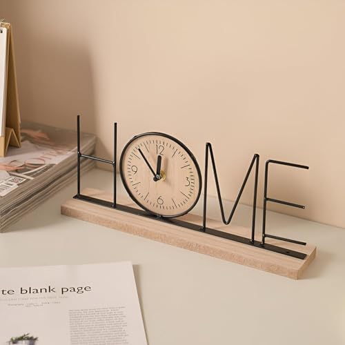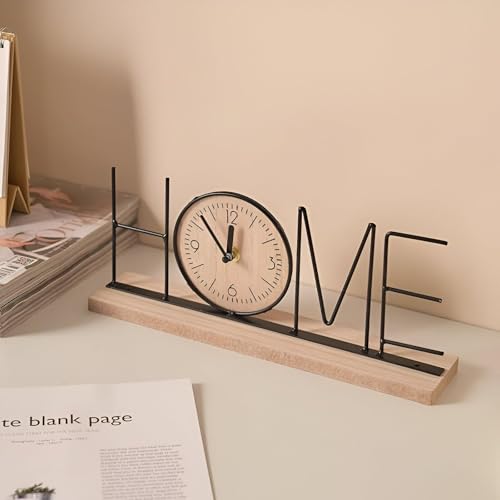 Generic - حامل ساعة للمكتب - تصميم عصري يتميز بقاعدة خشبية وهيكل مطلي بالذهب، مثالي لديكور المنزل او المكتب، هدية فريدة للمناسبات الخاصة (استاند شكل المنزل)