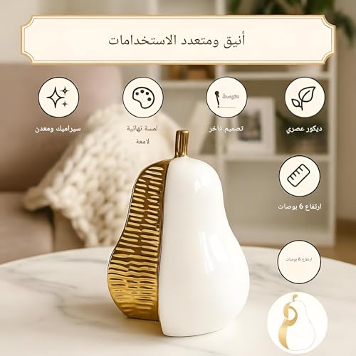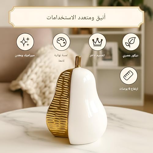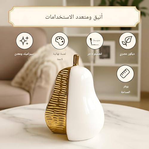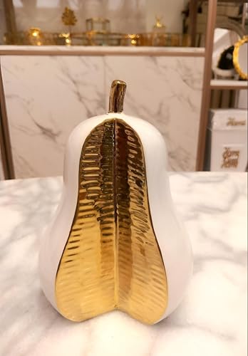 - Material and finish: a pear-shaped statue crafted from ceramic with a subtle gold-painted accent, delivering a contemporary metallic touch to any workspace.