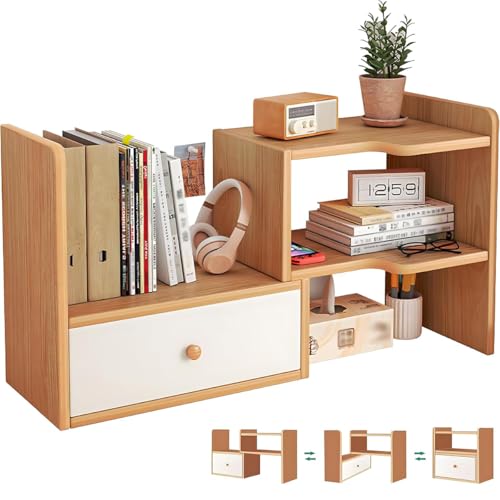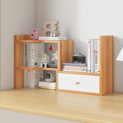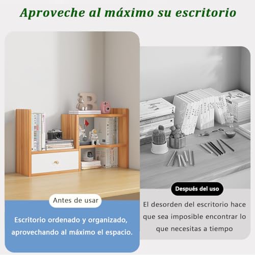 - 【QUALITY MATERIAL】: This desktop organizer bookcase is made of MDF chat material, thick and sturdy, strong bearing capacity, healthy and environmentally friendly, the bookshelves are made of multi-layer structure, can be numbered, books, stationery, documents, and other items are classified and stored, so that each item is in order and easy to access
