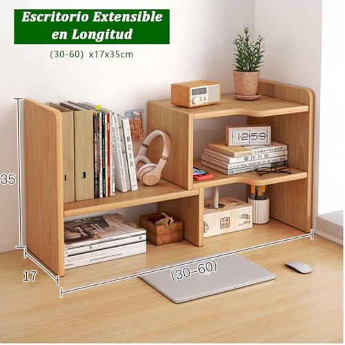 - 【DESK ORGANIZER】: Keep your home, office, bathroom and countertops tidy with this 2-tier desk shelf; The desk bookcase measures W22 x L (30-60 cm) 20 x H35cm and can hold up to 10kg (22lbs).