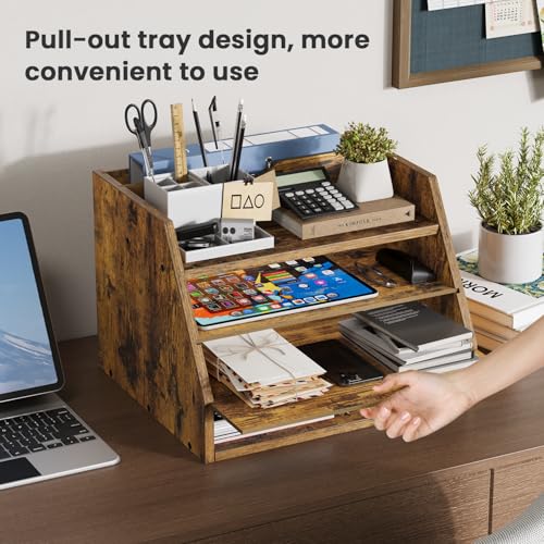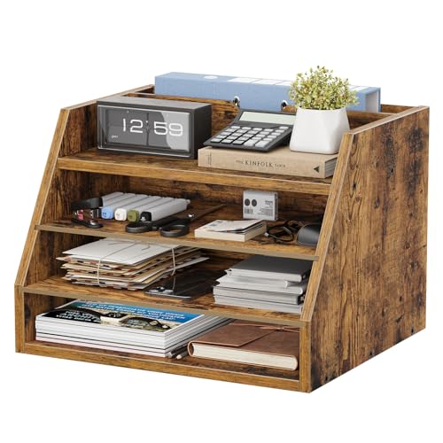 Creso hom - Desk Organizer with File Holder, Wood Paper Organizer Letter Tray with 4 Adjustable Shelves, Desktop File Organizer Literature Document Mail Sorter for Home Office School Supplies Accessories