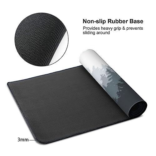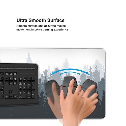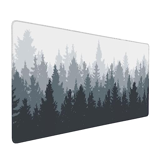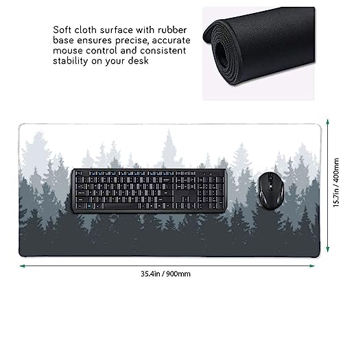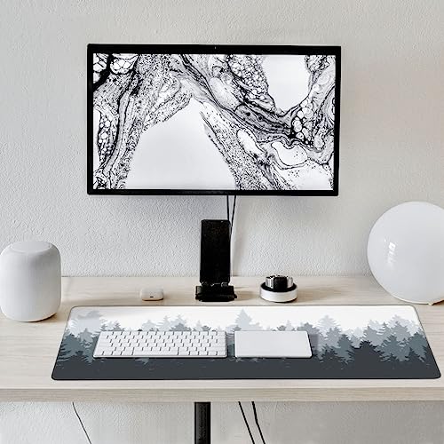 WWUMVE - وسادة مكتب، قاعدة ماوس للألعاب ممتدة كبيرة جدًا جدًا، حصيرة لوحة مفاتيح وماوس، ماوس باد لاب توب بحواف محاكة وقاعدة مطاطية غير قابلة للانزلاق للعمل المكتبي والألعاب، 90 × 40 سم، أشجار غابة بيضاء