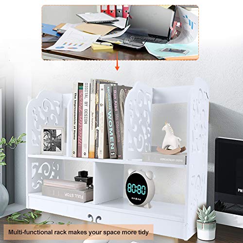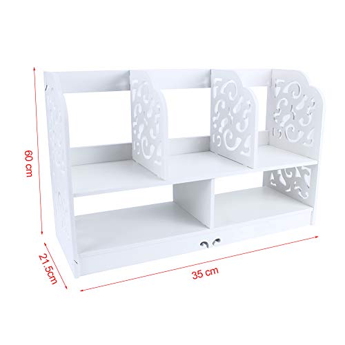 Greensen - Desktop Bookshelf, 2 Tier Wood Book Shelf DIY Storage Organiser Holder Desk Storage Organizer Desktop Display Shelf Rack Multipurpose Desktop Stand Bookshelf for Home Office White, 35 x 21.5 x 60 cm