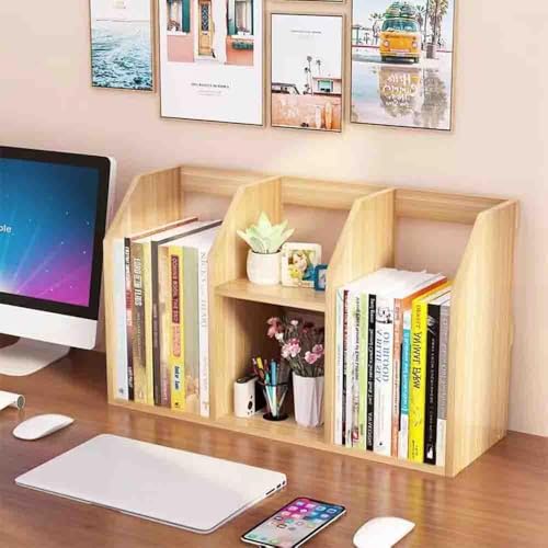 - 【Space-saving Design】The small size makes this bookshelf perfect for any desk, writing desk, table or countertop. Take full advantage of your desktop space and keep your desktop clear. Great gift for children, students, family and friends