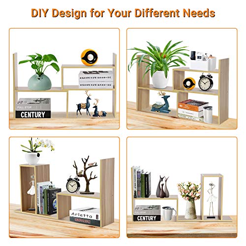Cocoarm - Desktop Organizer DIY Table Desktop Storage Rack Freestanding Desktop Display Shelf Adjustable Mini DIY Bookshelf Counter Top Bookcase Home Office Storage Desk Shelves Pot Shelves(Wood Color)