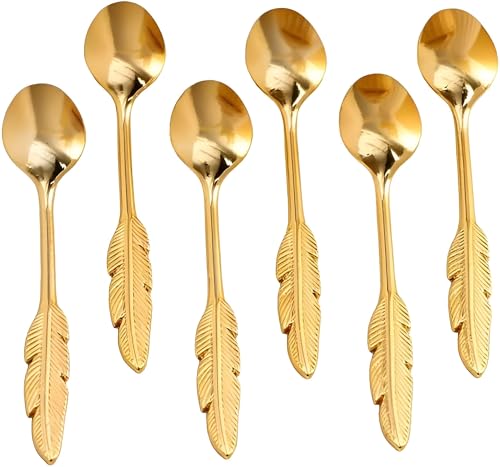 Generic - Dessert Spoons - Elegant Stainless Steel 6-Piece Set for Ice Cream, Coffee, Tea, Cake, and Spices with Feather-Shaped Handle Design (Gold)