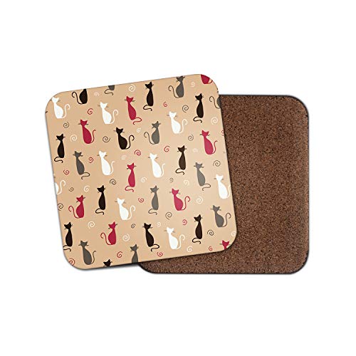 DestinationVinyl - قاعدة اكواب بطبعة قطط جميلة - قطعة واحدة بتصميم مرح لقطة صغيرة والقطة الام والعمة والبنات #15594
