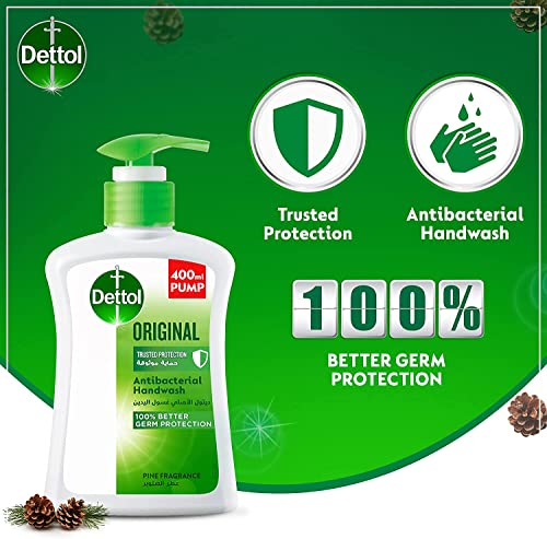 Dettol - Dettol Original Handwash Liquid Soap Pump for effective Germ Protection & Personal Hygiene (protects against 100 illness causing germs) Pine Fragrance, 400ml