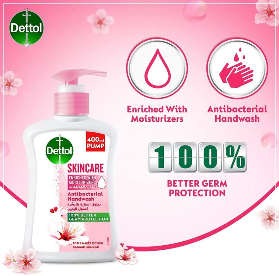 Dettol - Dettol Skincare Handwash Liquid Soap Refill for effective Germ Protection & Personal Hygiene (protects against illness causing germs) Rose & Sakura Blossom, 400ml, Pack of 2, 25% Off