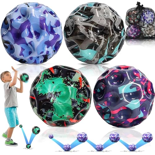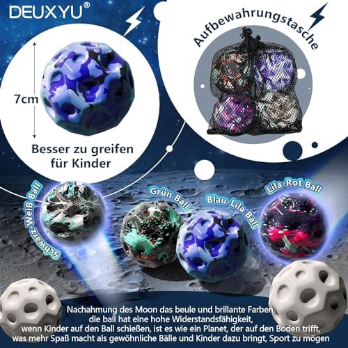 DEUXYU - Astro Jump Ball, Pack of 4 Moon Ball, High Jumping Ball for Children, Rubber Ball, Jumpball, Moon Ball, Spaceballs, Moon Ball, Bouncing Ball, Space Ball, MCTTQ-4P
