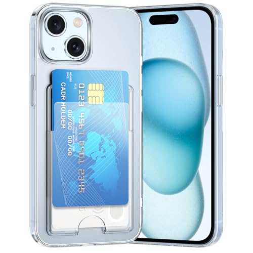 DEVASO - DEVASO Cover for iPhone 15 Transparent Case with Card Holder, Wallet Protective Silicone Slim Soft TPU Anti-Scratch Pockets Case for 2 Cards