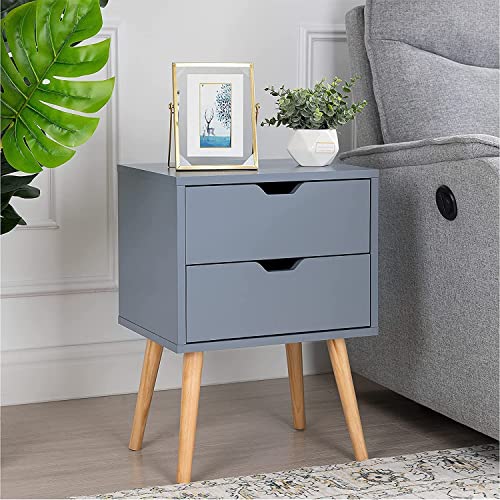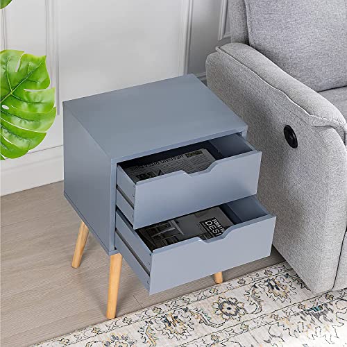 Device Bas with BROWN ART SHOPPEE - 2-Drawer End Side Table With Drawer And Solid Wood Legs, Bedside Table For Bedrooms, Mid-Century Modern Drawer Storage Cabinet For Bedroom & Furniture (Grey)