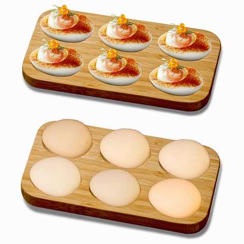 generic - Deviled Egg Platter & Deviled Egg Tray.Mini Bamboo 6-Holes Rectangular Wooden Egg Holder-countertop Egg Holder-Small Easter Deviled Egg Carrier for Kitchen Countertops