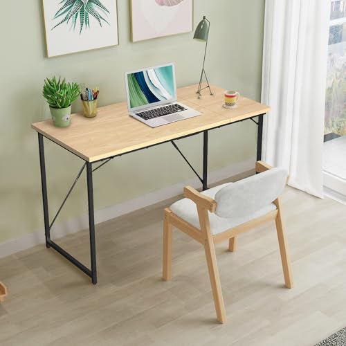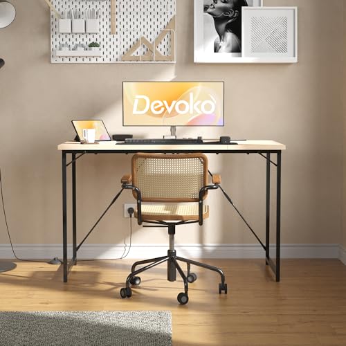 Devoko - مكتب كمبيوتر 1 متر من ديفوكو منزلي مكاتب صغيرة للدراسة والكتابة طاولة لابتوب لمحطات العمل المنزلية تصميم صناعي بإطار معدني أسود بيج