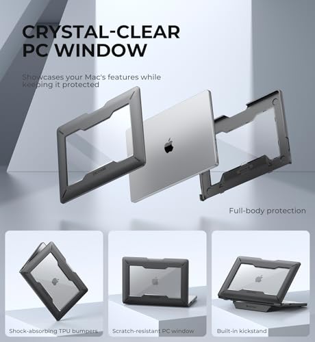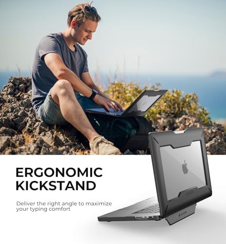 Dexnor - ديكسنور حافظة لجهاز ماك بوك برو 16 انش M3 برو/ماكس (2023) وM2 برو/ماكس A2780 (2023) وM1 برو/ماكس A2485 (2021)، [حامل مدمج] حافظة حماية صلبة مزدوجة الطبقات - اسود