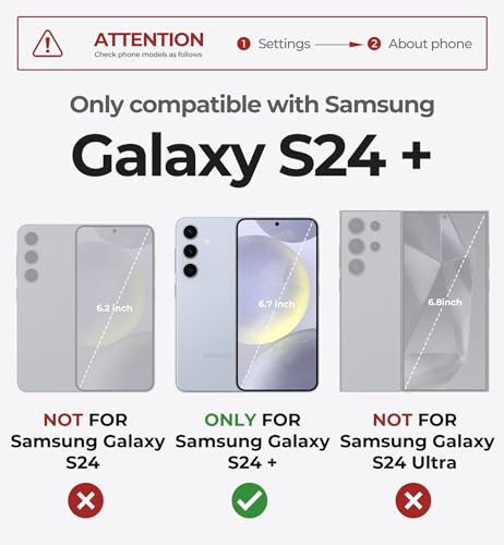 - 【Designed for Samsung Galaxy S24 Plus only】. This rugged case comes with precise cutouts for easy access to every port, button, and other functions, and it supports wireless charging and wireless PowerShare. To avoid any compatibility issues, please check your phone model carefully before making the purchase.