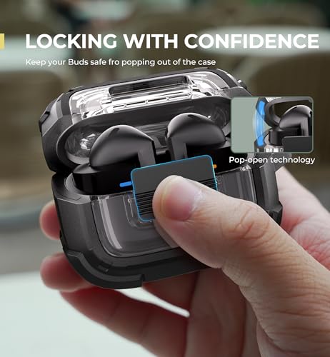 - Secure locking mechanism: Equipped with a sturdy pop-open locking latch, this shockproof case keeps your Galaxy Buds3 Pro/Buds3 securely in place, ensuring they won’t fall out even during the toughest drops and bumps.