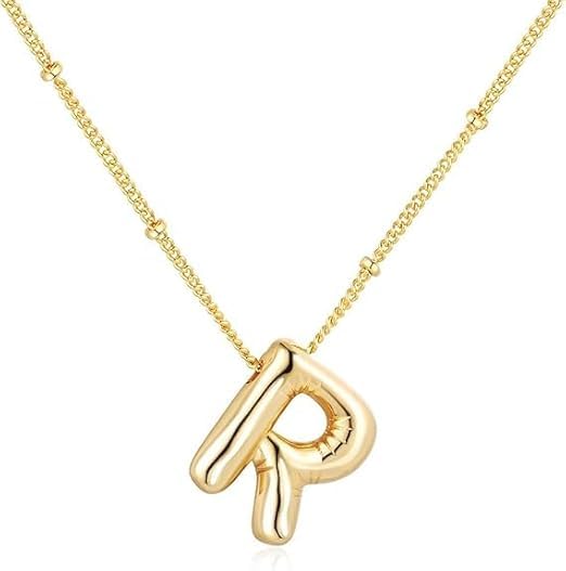 Generic - DF 18K Yellow Gold Plated Real Gold Stainless Steel Necklace 26 Letters New Shiny Balloon Big Size A-Z Bubble Initials Wishbone Chain (R)