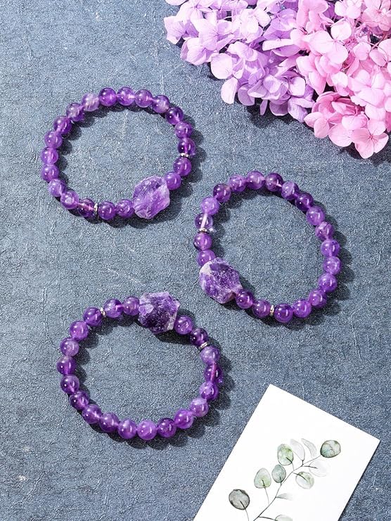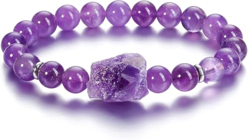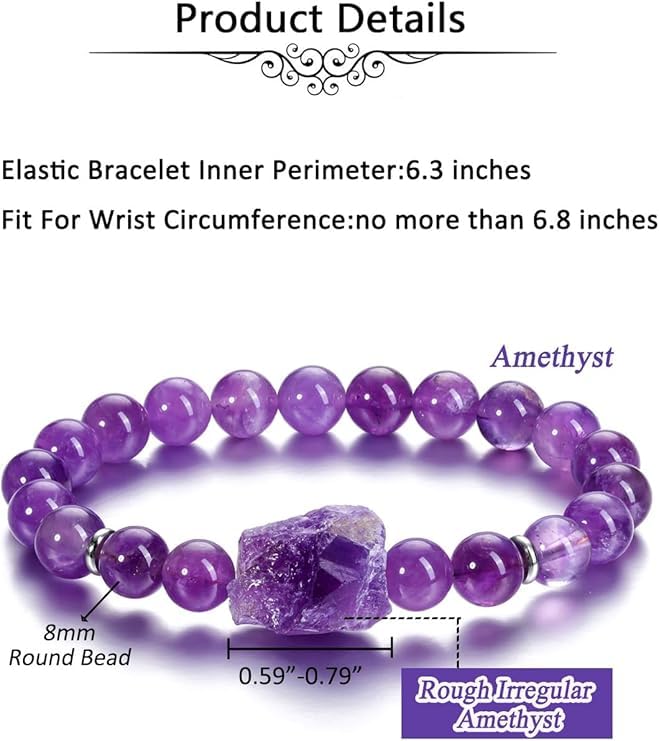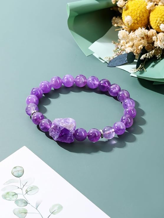 Generic - DF Amethyst Crystal Bracelet,Natural 8mm Gem Semi Precious Round Stone Energy Beads Reiki Healing Crystal Raw Amethyst Cluster Bracelet for Women Men