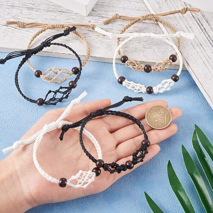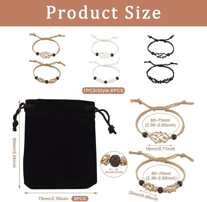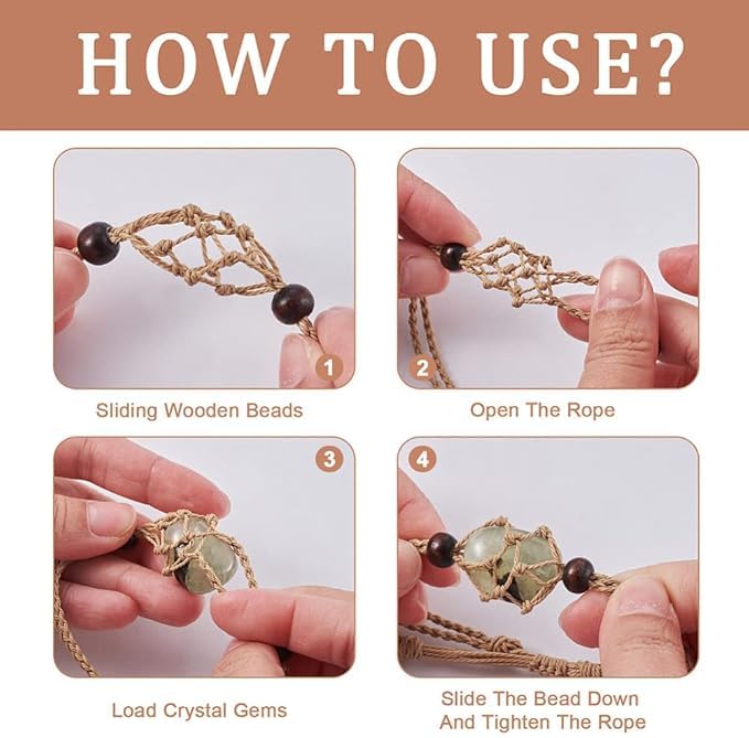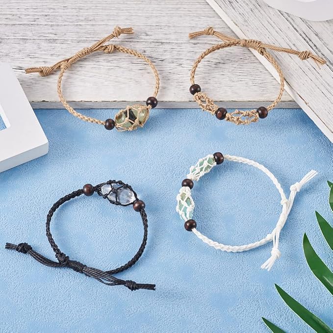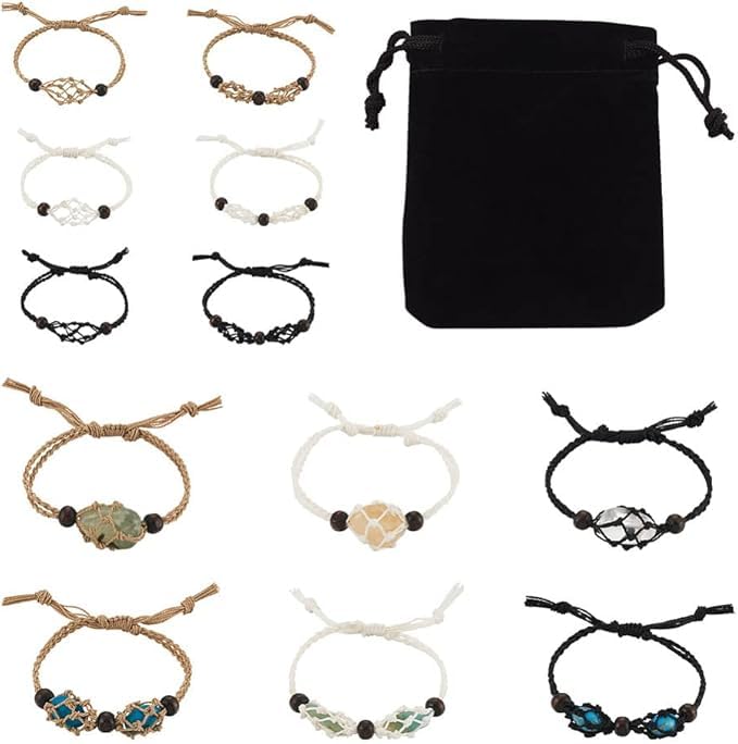 Generic - (DF) Empty Crystal Bracelet Necklace Holder Sets Including Adjustable Stone Cage Replacement Braided Bracelet Netted Holder Pendant Bracelet & Drawstring Velvet Bags, Polyester, No Gemstone