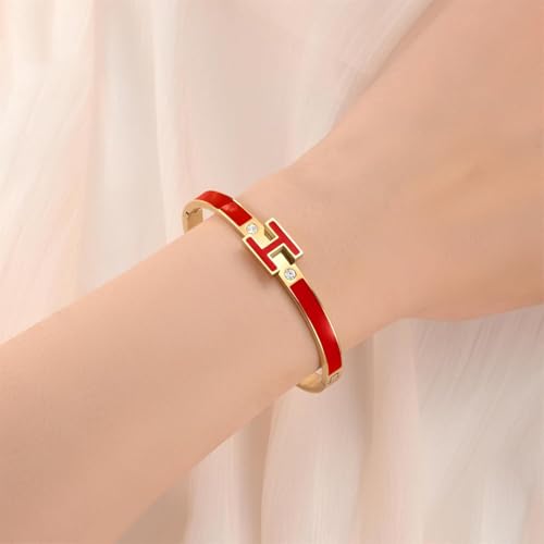 Generic - (DF) Gold Bracelets for Women,H Bracelet,Bangle Bracelets for Women,Dainty Bracelet Jewelry Easter Christmas Mothers Day Gifts for Women, 7.1in, 18K Gold Plated, no gemstone