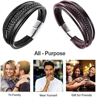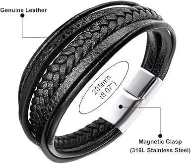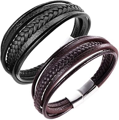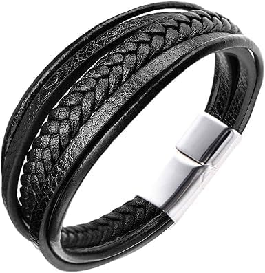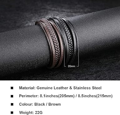 Generic - سوار مضفر متعدد الطبقات من جلد البقر الطبيعي بطول 20.3 سم للرجال من اوكالير (نمط سي: لون أسود، 20 سم) من الجلد
