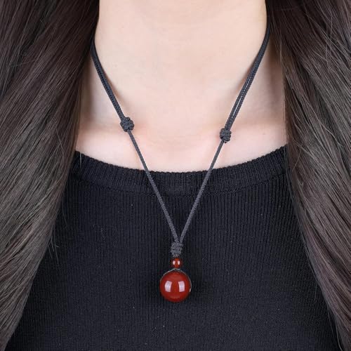 Generic - (دي اف) عين النمر، قلادة بدلاية بسيطة مستديرة قابلة للتعديل من الاحجار الكريمة للشفاء والطاقة الكريستالية 10 ملم، خرز للجنسين، حجر طبيعي