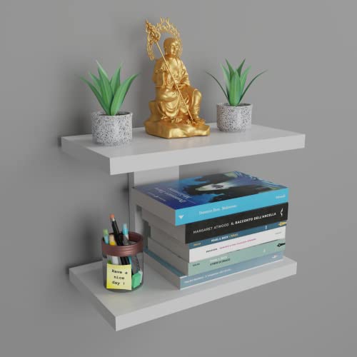 DFC - DFC Aegon Engineered Wood Wall Mount Book Shelf Rack for Books and Home Décor MDF Wood Storage Bookcase Display Rack for Office and Library (Matte Finish, White)