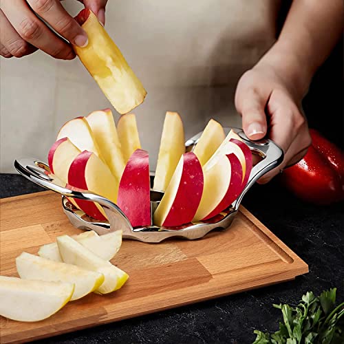- 【Easy to Use】The fruit slicer can easily and incredibly quickly divide your fruit into 8 pieces of equal size apple by placing them in the center and simply pressing down. You can apply this cutter to a variety of fruits such as apples, pears, potatoes, onions, etc. Instead of wasting more time cutting fruit, save more time and energy to enjoy fruit every day.