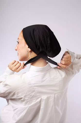 DH HIJAB - Cotton Bandana, Black, Pure Cotton, Drawstring Style, Neck Cover .omfort and style with this black cotton bandana