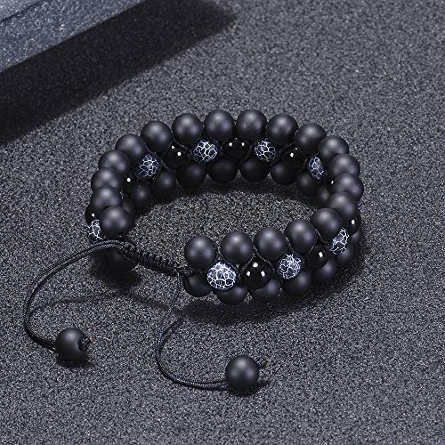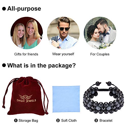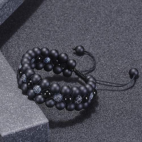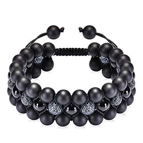 DHQH - DHQH Natural Stone Beads Chakra Bracelet 8mm Lava Rock Tiger Eye Stone Bracelet Adjustble Essential Oil Diffuser Bracelets Meditation Relax Healing 3-Layer Bangle for Men, 8mm
