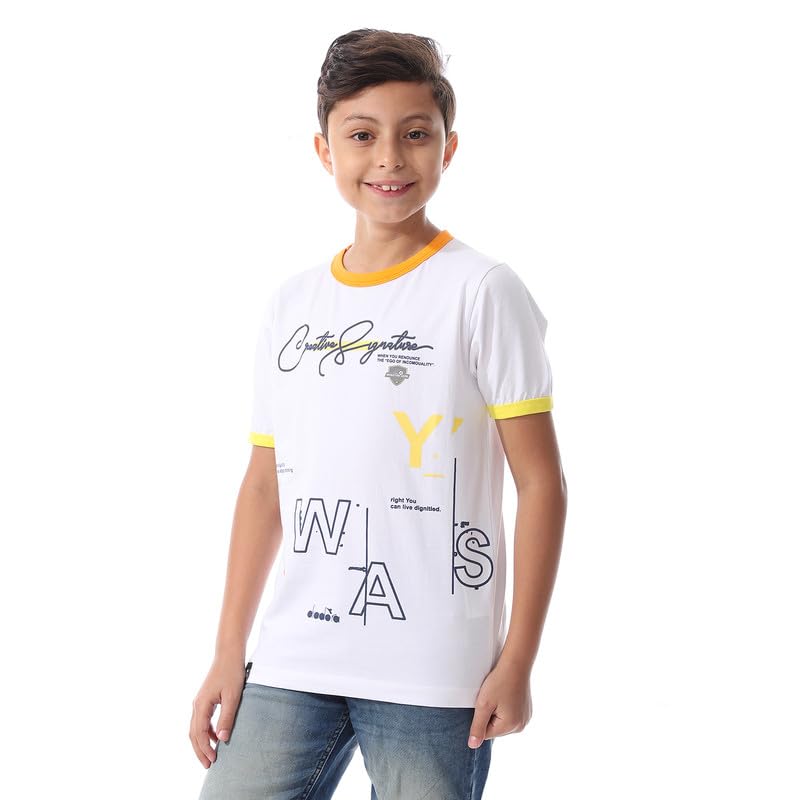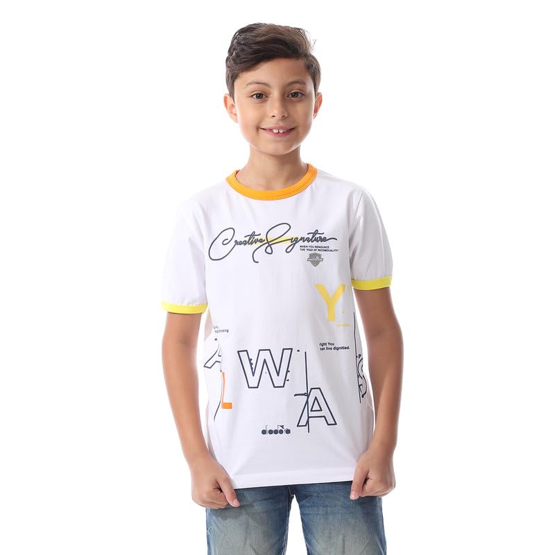 Diadora - Diadora Boys Printed Cotton T-Shirt 14 Years White