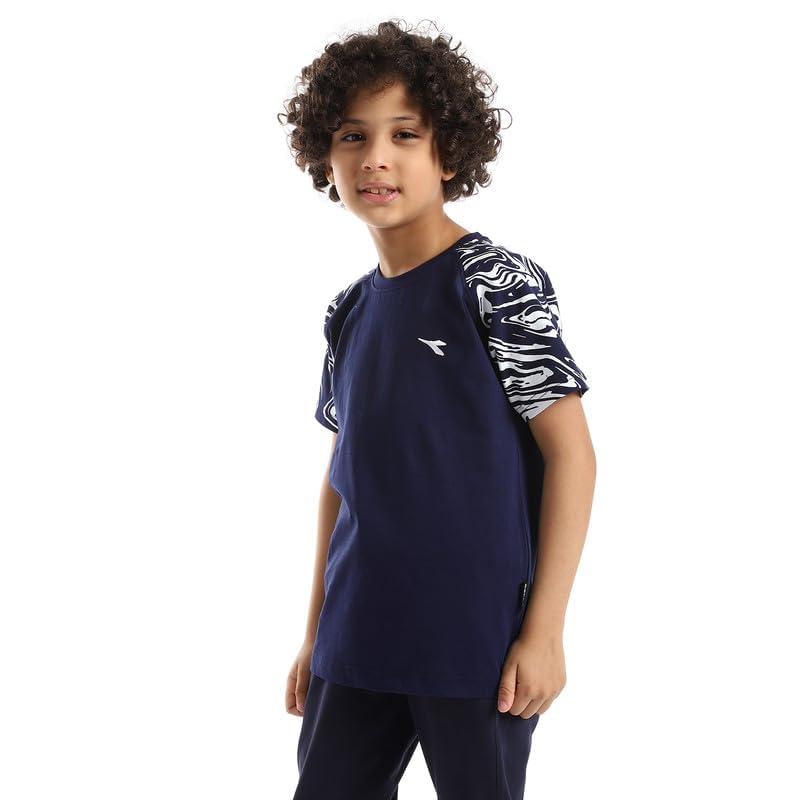 Diadora - Diadora Boys Printed Cotton T-Shirt – 6-7 Years Navy
